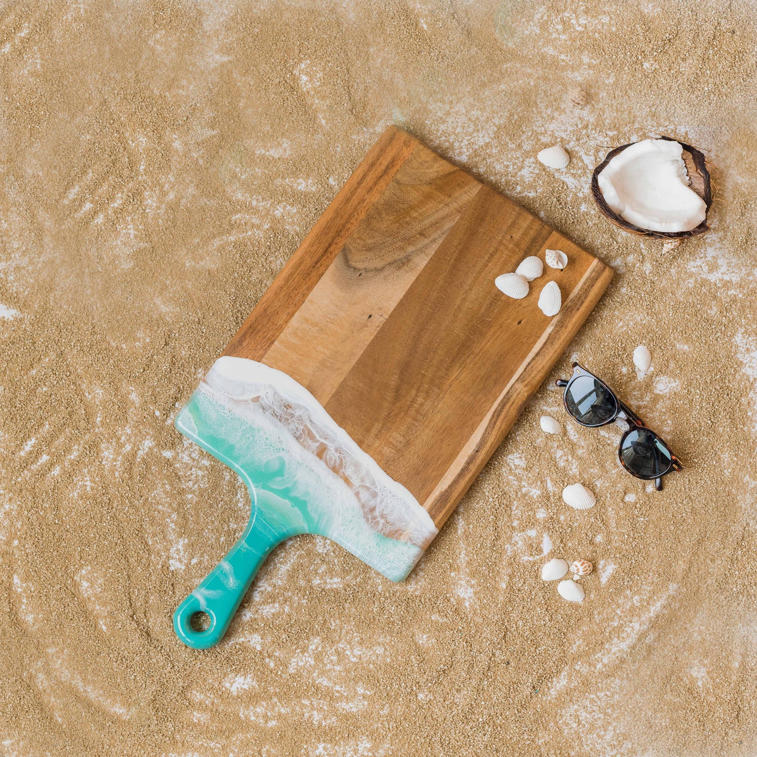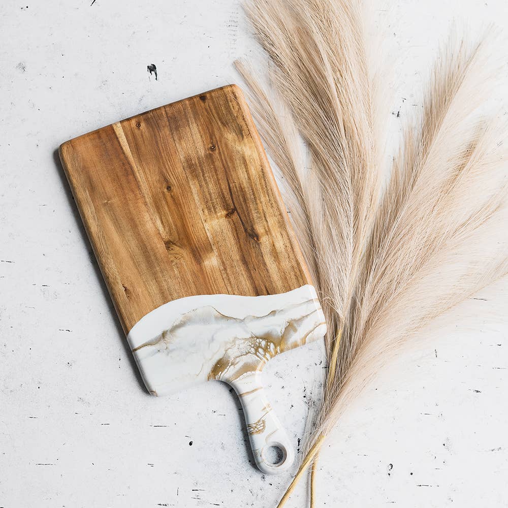 Use it as a cheese board, charcuterie board or cutting board! These pieces blend gorgeous Acacia hardwood and an eco-friendly resin to create a one-of-a-kind piece of serveware for your home.