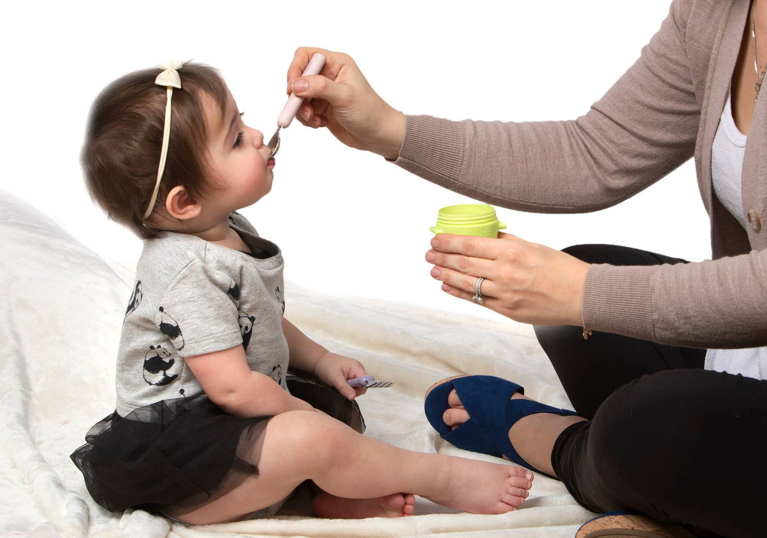 Detachable spoon and fork with a compact carrying case. Use the stainless steel spoon and fork together or separately. Carrying case keeps dirty utensils contained after use. Soft grip spoon handle.
